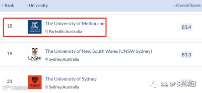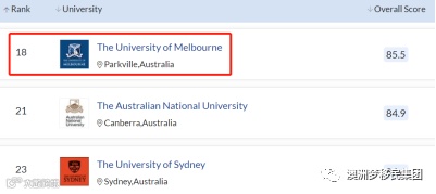 最后我们再回温下2021 QS世界大学排名总榜,世界排名百大高校中澳洲有7所高校跻身前列,分别是: