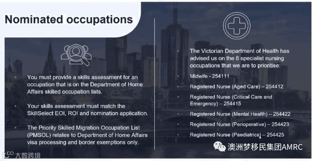 维州政府根据维州健康部门建议,将优先担保以下职业6种护士类别的职业。