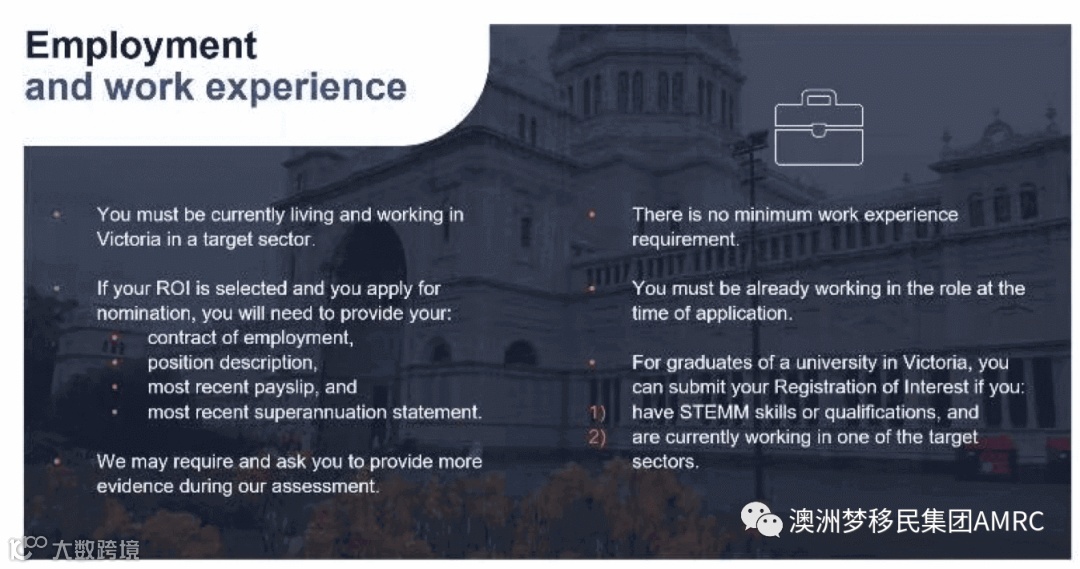 维州政府并没有一个完整的职业列表明确STEMM的技术和学历要求,申请人可以根据自己的实际情况咨询自己的移民律师,递交Registration of Interest, 州政府会根据申请人的条件进行排名对比,择优录取。