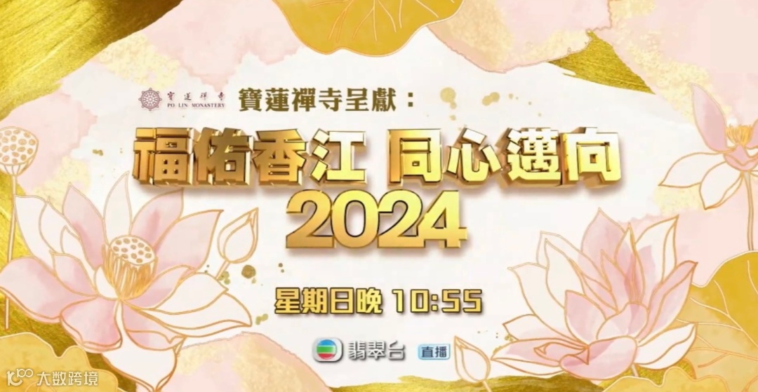 (2023年12月28日)为迎接2024年,一众歌手艺员将会联同多个专业演艺团体,汇聚宝莲禅寺天坛大佛,献上连场音乐盛宴,加上天坛大佛的钟声和莲花灯海,与及逾三百五十架无人机大汇演,为香港以至全球观众送上2024年元旦最美妙的祝福,祈求2024年事事顺遂,有更美好的新一年。无线电视翡翠台于12月31日特别炮制特备节目《福佑香江 同心迈向2024》,由晚上10时55分开始直击宝莲禅寺元旦叩钟倒数活动,与广大市民携手跨进大好年。