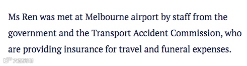 预计任女士将在澳大利亚停留一到两个星期,并在返回中国的时候将其儿子的遗体一并带回。