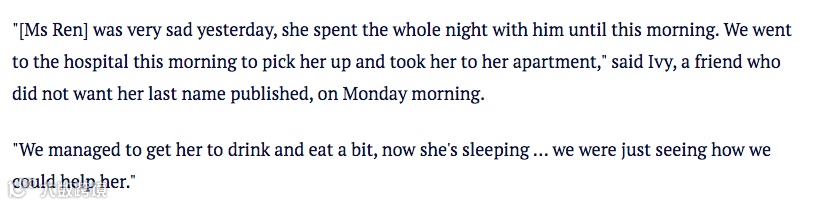 另一位朋友Ivy表示,自己正在竭尽全力来帮助任女士度过这一悲痛的时光。