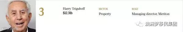 值得一提的是,位列榜单第三位的犹太富商,地产开发商Meriton的老板Harry Triguboff也和中国有着颇深的渊源,Triguboff的出生地是在中国大连。