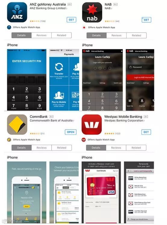 澳大利亚的各大银行都有自己的移动客户端,功能也十分全面,比如 ANZ 的 ANZ goMoney 和 Commonwealth 的 CommBank。这些移动客户端完全可以满足日常查询、付款、转账等需求,便捷的同时安全性也能得到保障。在App Store中搜索银行名字就可以轻松下载。