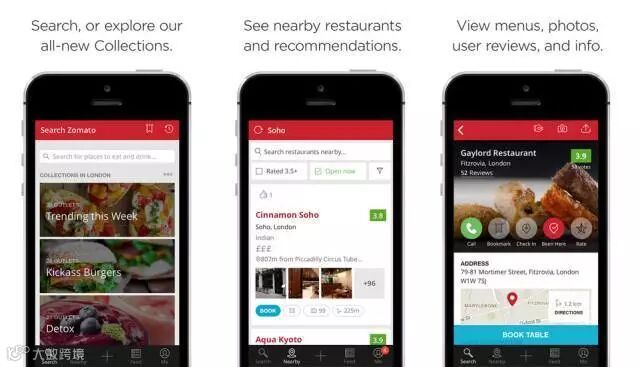 zomato 是一款“吃货必备神器”。如果您想在附近找到一家好吃的餐厅,或者找到一家口碑不错的特色餐厅,或提前了解餐厅环境、菜单、价格以及客人点评。这款APP 绝对能帮上忙。根据网友的打分和评论,按“评分顺序”排列即可看到餐厅的口碑情况。