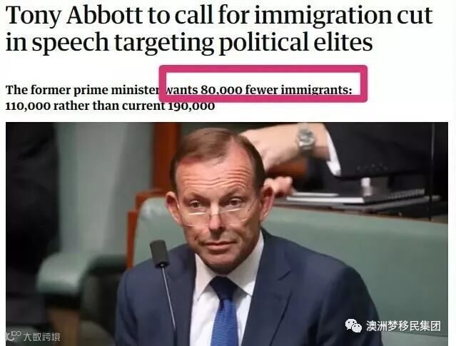 托尼 艾伯特 Tony Abbott 总理期间就致力减少移民数量,卸任后仍呼吁减少80000配额,从每年190000降至110000;