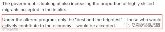 澳大利亚明确将进一步“优中选优”,把“最优秀的、最聪明的”技能型人才、商业投资人才引入澳大利亚。估计这又是在给澳大利亚政府提高移民门槛标准埋下伏笔。
