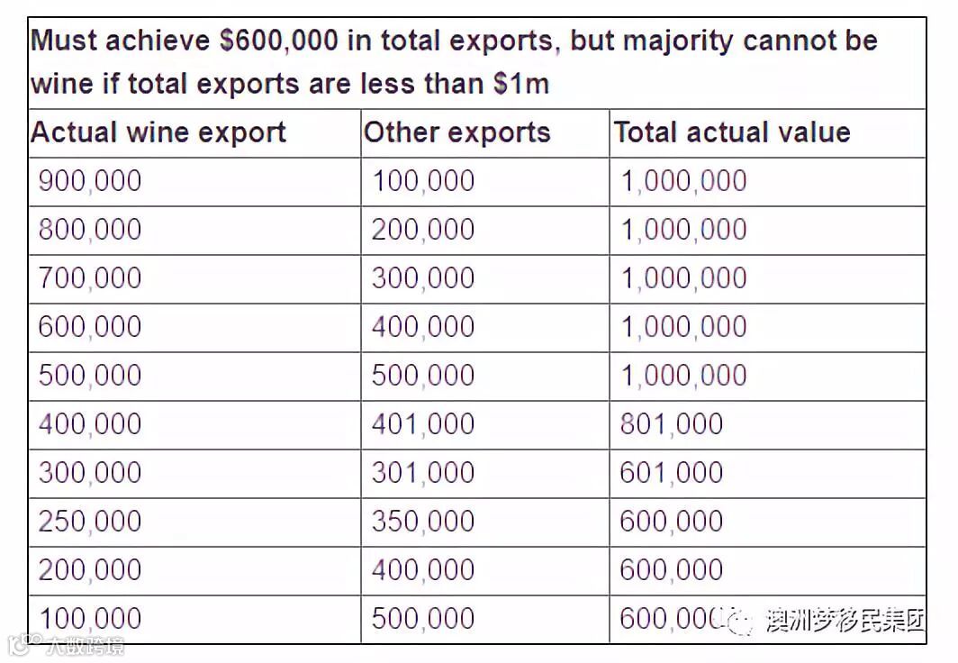 另外,目前南澳132天才投资商业移民进行房地产开发投资的门槛还是150万澳元;出口南澳产品贸易,两年出口额还是60万澳元。但如果是出口葡萄酒之类为主的话(占51%以上),这个数字提高到了100万澳元。