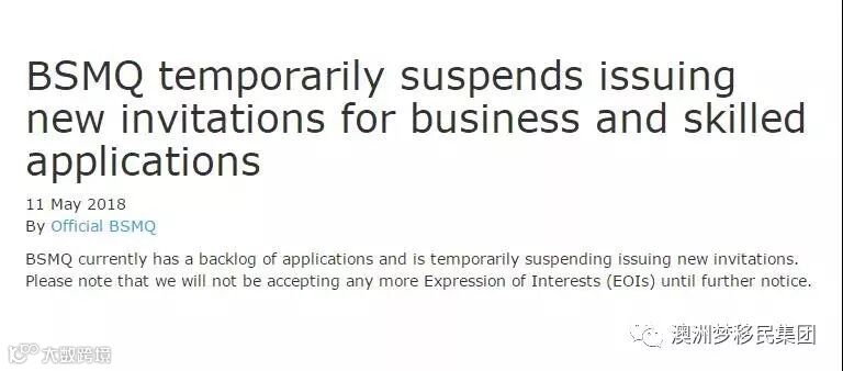 联邦内务部昆士兰州移民局官网日前宣布:暂停发放商业移民邀请函,暂不接收州担保申请!何时重开,请等通知!