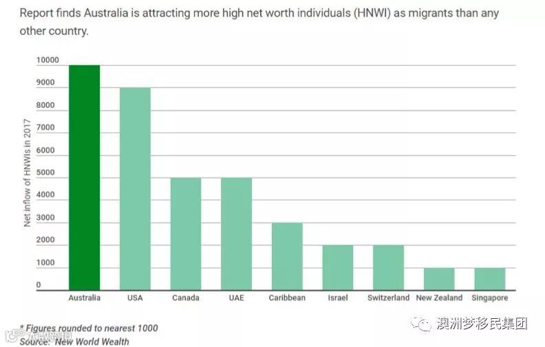 根据新世界财富咨询公司New World Wealth发布的《2017全球财富及富豪移民趋势报告》Global Wealth Migration Review——Worldwide wealth and wealth migration trends显示,澳大利亚较其他国家而言,吸引了更多的高净值人群。