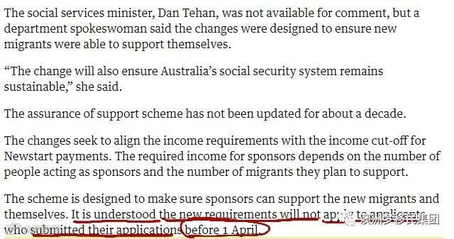 澳洲梦点评:《卫报》的独家报道信息来源应该是可信的。请4月1日前已经递交143付费父母移民签证的申请人安心。另外,这也说明了华人群体的团结一致和集体发声起到了效果!大家要进一步团结,为我们的利益努力争取,让华人的声音更大、更有力量,就可以影响政府出台政策的考量!澳大利亚是言论自由的社会,我们为自己的正当利益集体发声,是澳大利亚这个公平社会必要的组成部分。