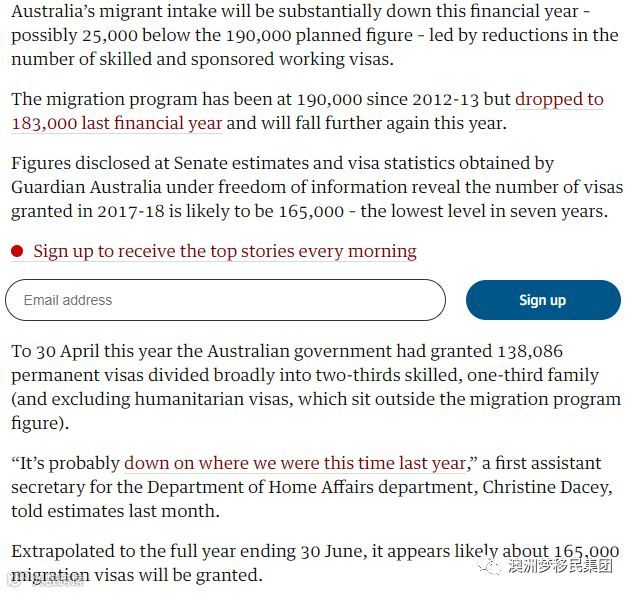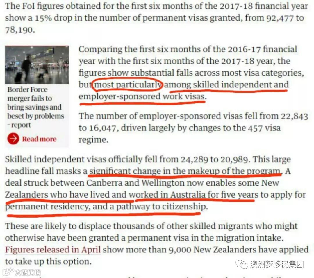 今天《卫报》最新报道,据联邦参议院估计和澳大利亚卫报获得的披露的数据信息显示,2017-2018财年授予的永居签证数量可能为165000张,比计划减少25000张,这是七年来的最低水平。