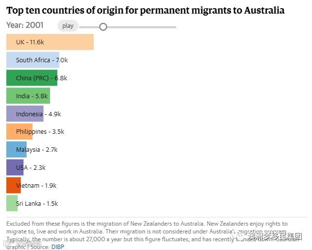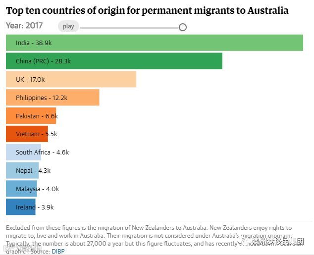 过去二十年,印度和中国取代英国和南非成为移民澳大利亚的来源国。