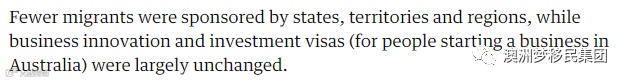 这里面,各州和领地提名担保的移民数量也有所减少,但商业投资移民的份额没受太大影响。相信在即将来到的2018-2019财年,各州和领地的商业投资移民不会在数量上萎缩,只是个别签证种类的门槛会相应提高。