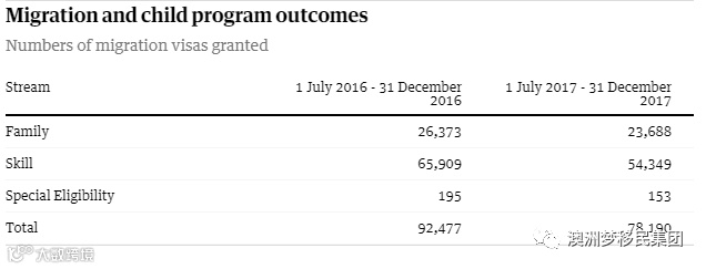 由于457签证制度的变化,雇主担保类签证数量从22843下降到16047。