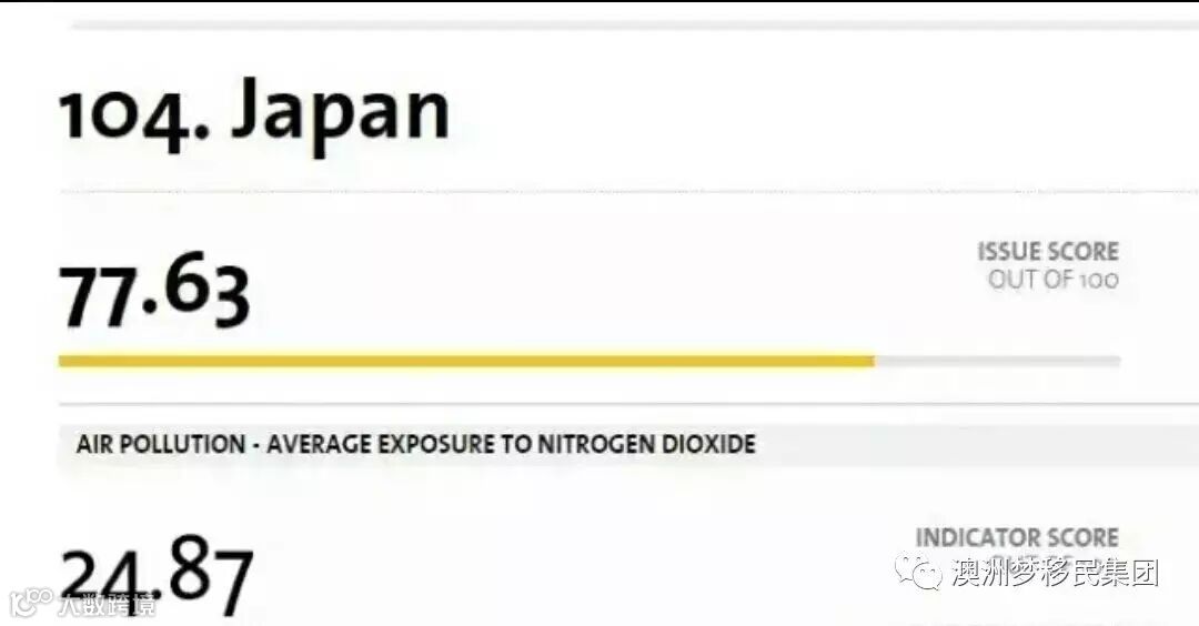 澳大利亚在PM2.5的两项指标中得分为98.88分和100分,只有在“二氧化氮浓度平均值”一项得分为72.17分。二氧化氮为有害气体,由道路交通尾气、矿物燃料燃烧等因素产生,属于世界性难题。许多发达国家均因此成绩而受拖累,日本二氧化氮得分为24.87分,位列104,德国位列137,美国位列43,英国62,法国84…...