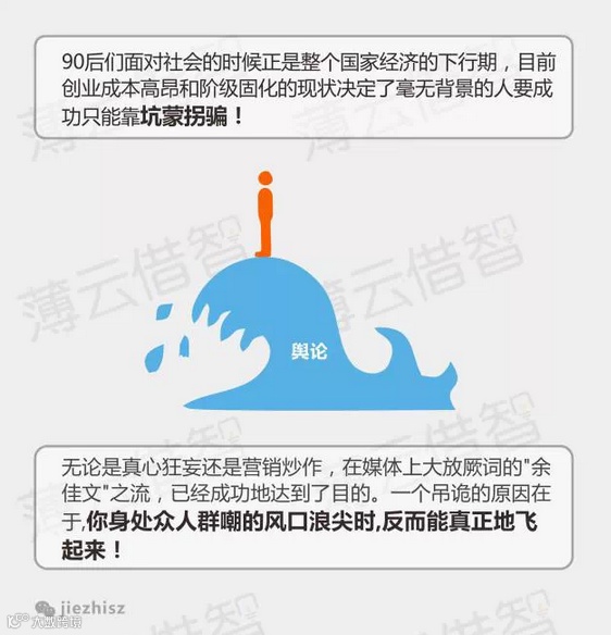 不知什么时候开始,“90后创业浪潮”这一概念突然间闯入了大众的视野,各种“马佳佳”“牛佳佳”之类的新闻充斥着大街小巷。伴随着“得罪了整个互联网圈”的余佳文在央视上大放厥词,“90后创业者们”更是被推上了风口浪尖。然而,在这些令人刺耳的喧嚣背后,“90后创业浪潮”为何如此汹涌?这年头,真的已经到了“没创过业都不好意思跟人打招呼”的地步?