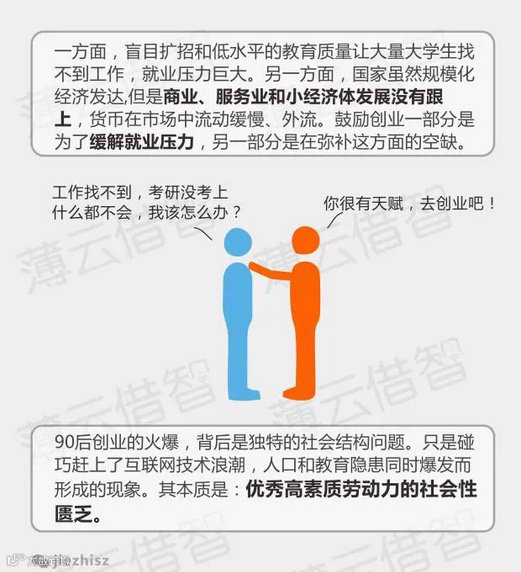 浪潮汹涌原因:整个社会浮躁的大环境,更容易让年轻人眼高于顶,以为只要有想法,讲创新,谈情怀就能改变世界。