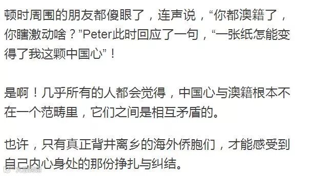 有个趣事,分享给大家,朋友Peter,现在已是澳籍华人,去年在他家看奥运短道速滑,最后冲刺阶段,中美两国选手你超我赶,互不退让,看的我们也是澎湃至极。