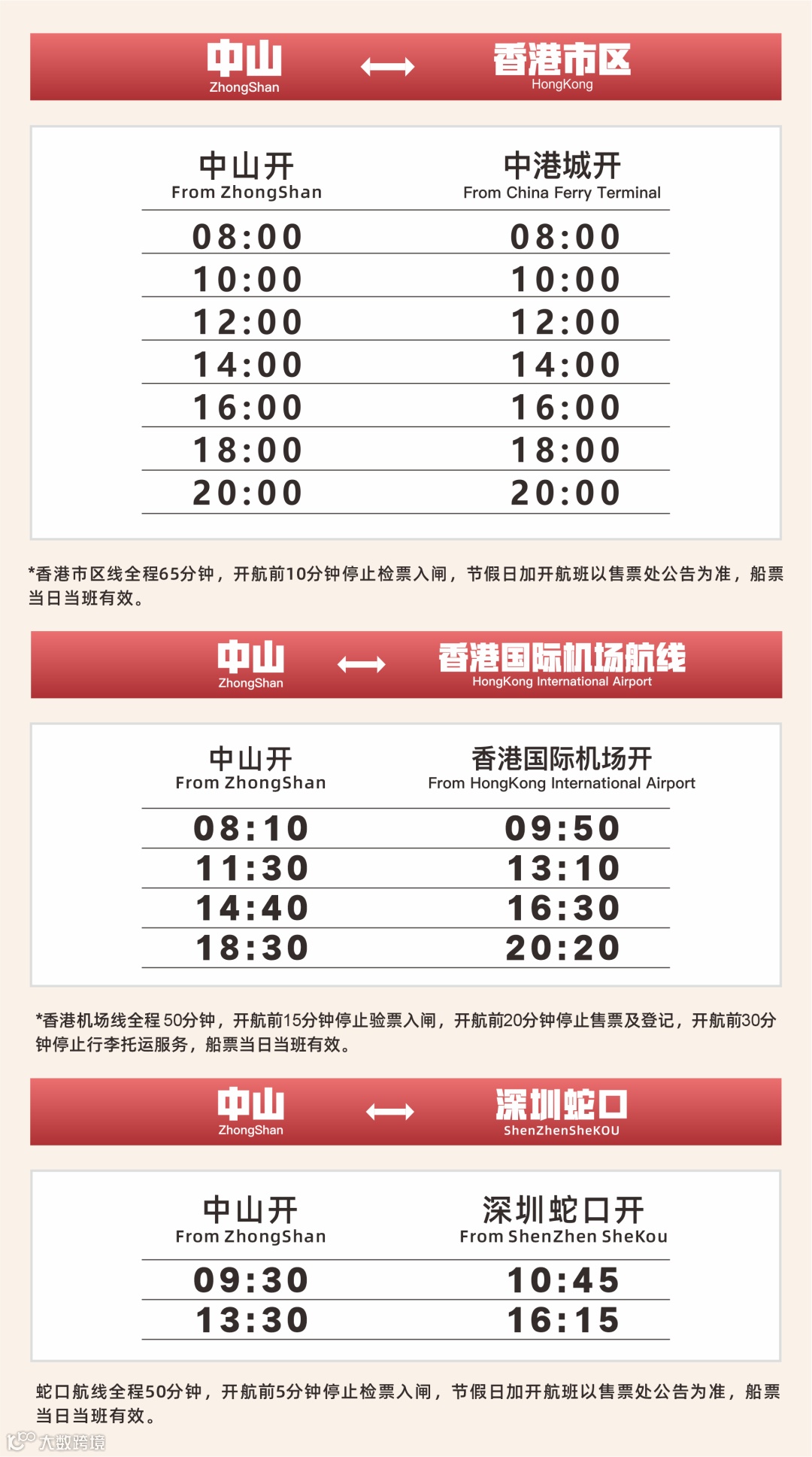 (中港客运微信购票小程序、中山/香港中港城售票处、各大售票点)
