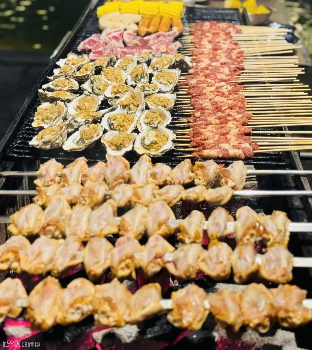 烤鲜鱿、牛排、生蚝、烤鸡...