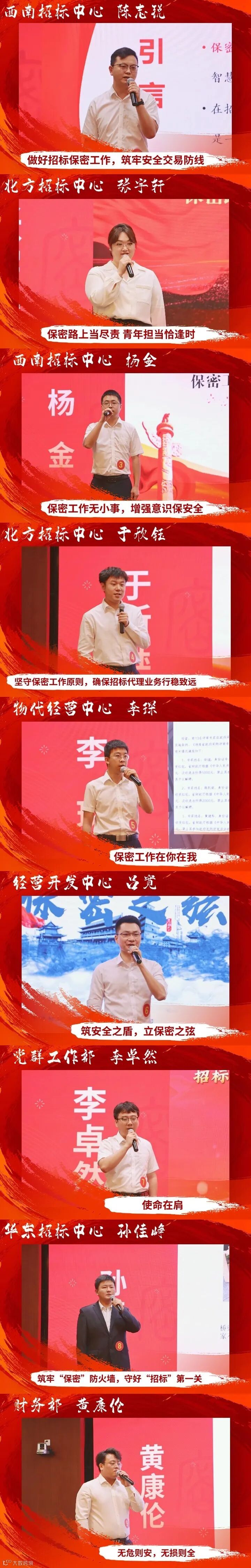 本次保密主题演讲比赛的成功举办,不仅展现了招标分公司青年昂扬向上的精神风貌,提升了干部职工保密意识和技能水平,更是落实全国安全生产月以及2024年保密宣传教育月要求的具体举措。招标分公司将继续贯彻总体国家安全观,以更饱满的精神,更昂扬的姿态,共筑维护党和国家秘密安全的人民防线。