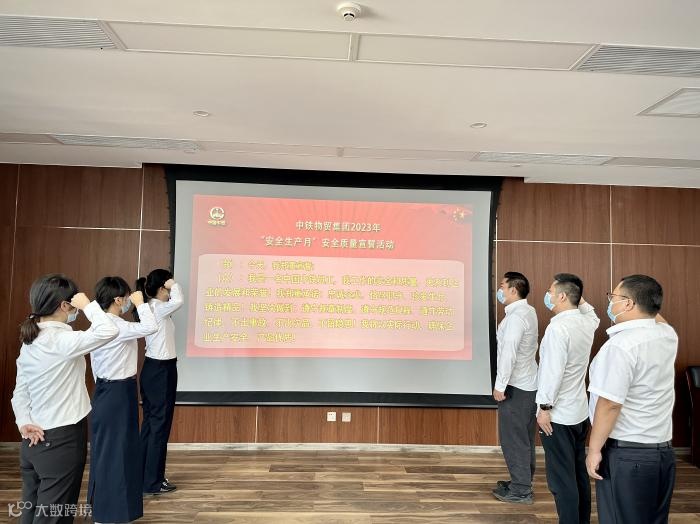 2023年6月1日上午9时,中铁物贸招标分公司组织北京、成都、昆明、深圳各地员工参加了中国中铁股份公司组织的2023年“安全生产月”视频宣誓活动。