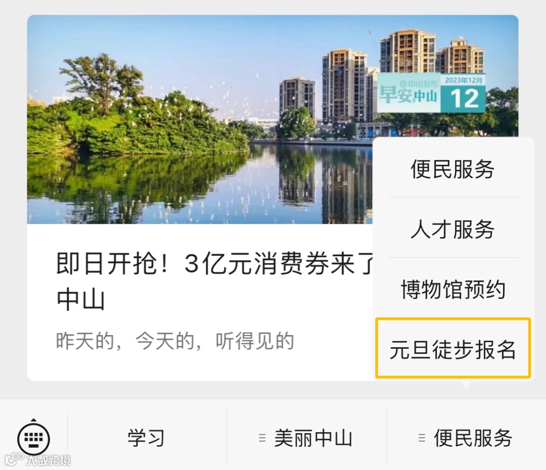 由中山市“百千万工程”指挥部指导,中山市农业农村局、中山市教育和体育局主办的中山首届元旦徒步活动拟于2024年1月1日举办。