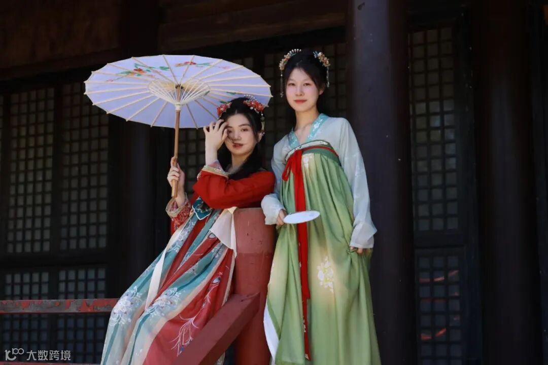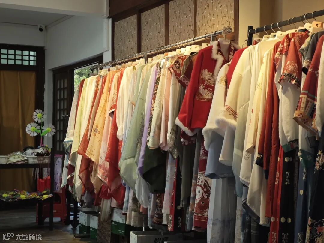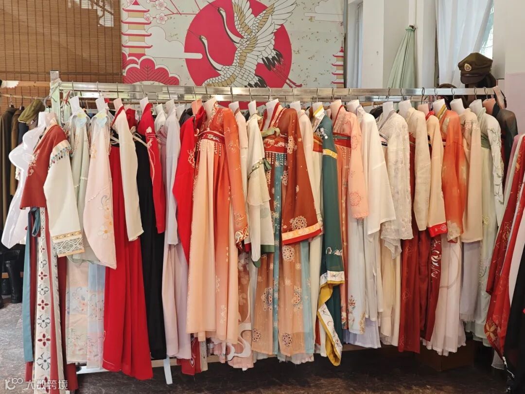 这些汉服款式丰富,有飘逸的长裙、端庄的襦裙、潇洒的直裾等,每一款都散发着独特的魅力。应有尽有,满足不同游客的审美需求。