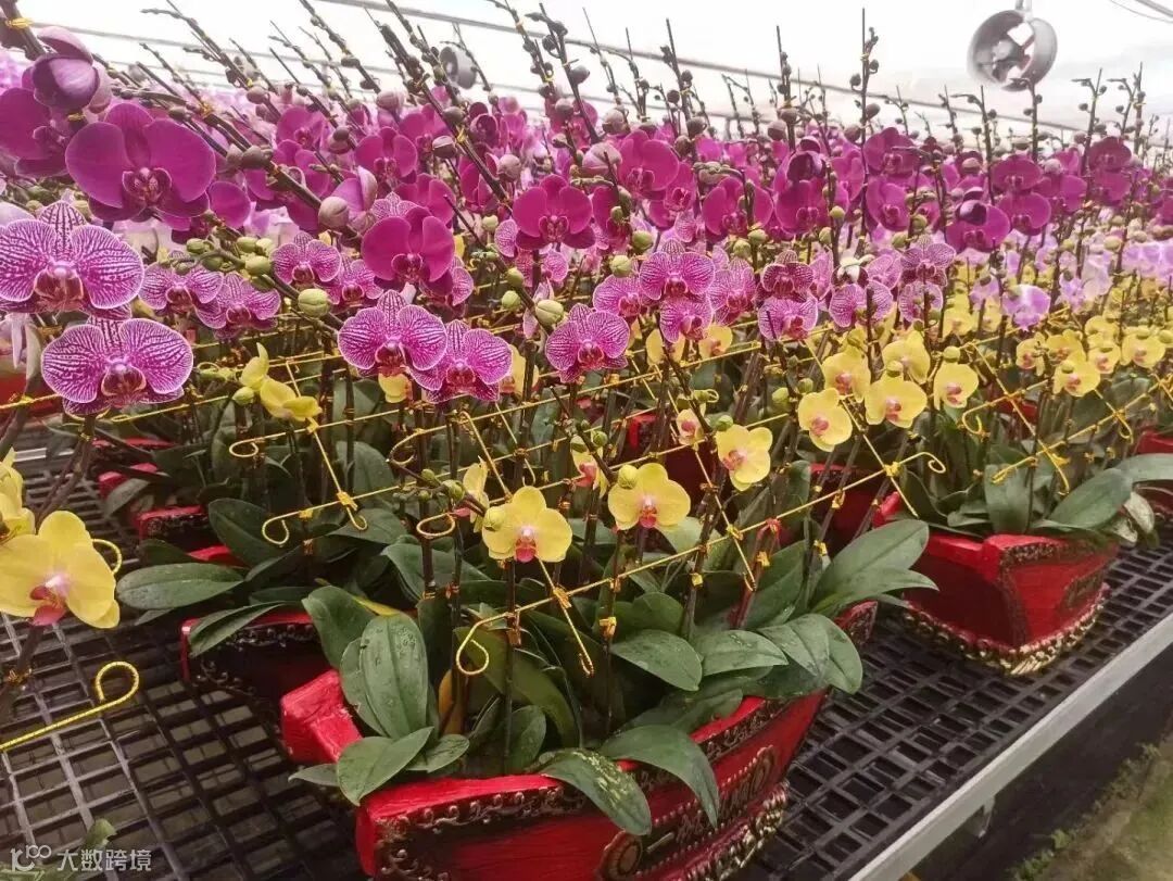 姹紫嫣红的蝴蝶兰、寓意吉祥发财的年桔..
