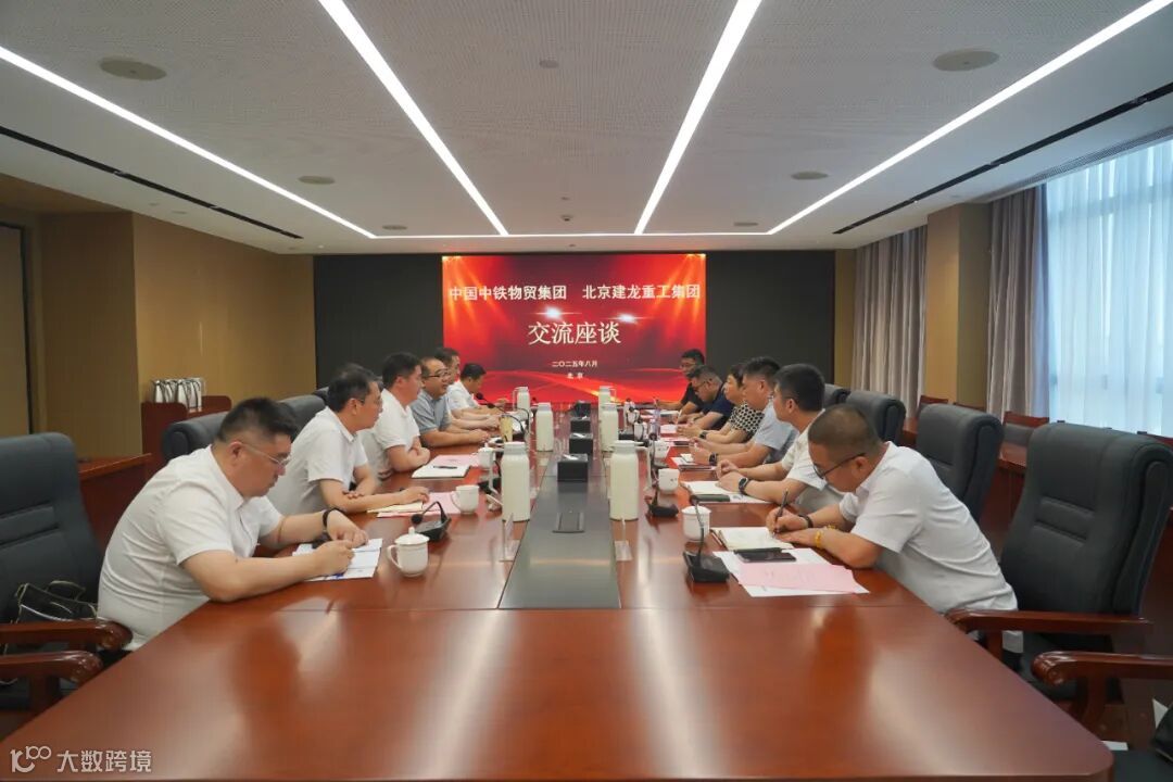 8月11日,中铁物贸与北京建龙重工集团有限公司开展座谈交流。北京建龙重工集团有限公司副总裁黄丹,经营总监罗立新,中铁物贸党委书记、董事长陈金亮,党委副书记、总经理周海辉,副总经理武振亚出席座谈。