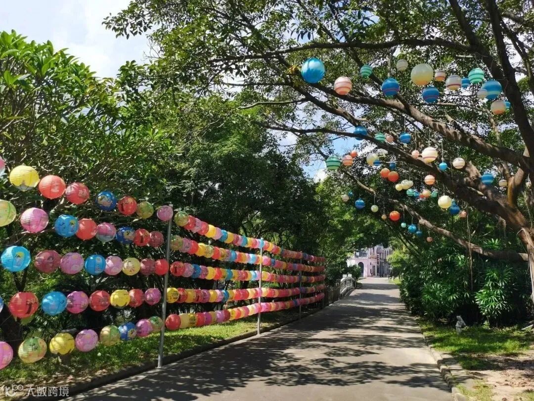 在广州街中心湖石桥旁灯笼墙打卡点处,游客们可以进行猜灯谜的活动,还可以DIY灯笼。