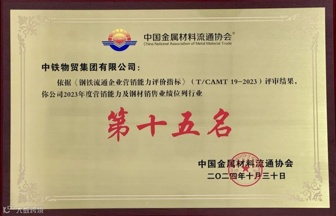 近日,由中国金属材料流通协会与中共河津市委、河津市人民政府共同主办的第十九届中国钢铁流通促进大会以及系列活动,在山西省河津市隆重举行。会上举办了“2023年度全国钢铁流通企业营销能力评价结果(五十强企业)发布与颁奖仪式”。中铁物贸获评全国钢铁流通企业营销能力“五十强企业”,位列行业第十五名。