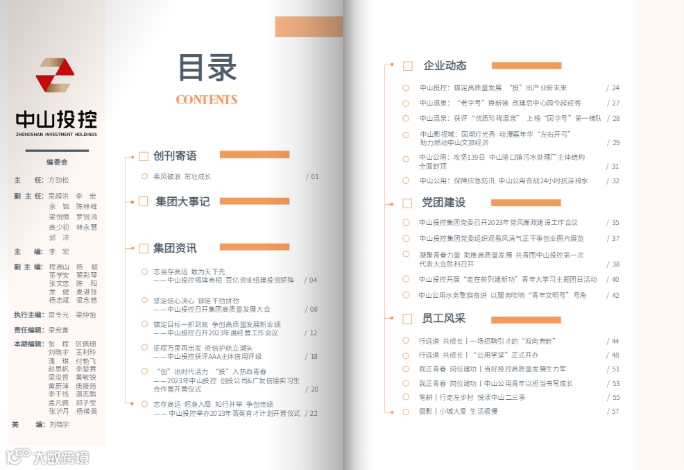 本期内刊还有更多不容错过的精彩内容:笔耕不辍,跟随投控员工的笔录,一道采撷左步古村文风,领悟香山名城文化底蕴;世相一瞥,透过投控员工的镜头,定格中山城市风光,体会小城大爱的惬意。