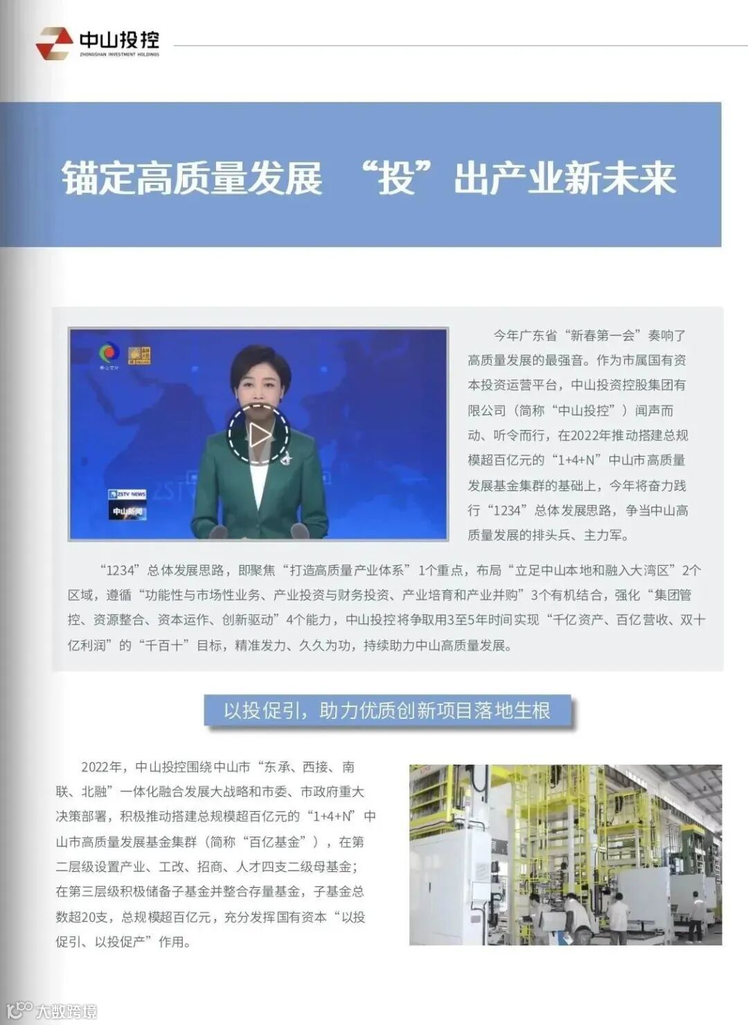 风雨兼程,砥砺前行。中山投控集团揭牌亮相、获评AAA主体信用评级、召开高质量发展大会、布局2023年度经营工作、举办实习生合作营、启动菁英育才计划……本期内刊的集团资讯板块里,回顾了集团自重组以来的重大部署举措,围绕“千亿资产、百亿营收、双十亿利润”战略目标,描绘施工图,擂起出征鼓,吹响冲锋号。