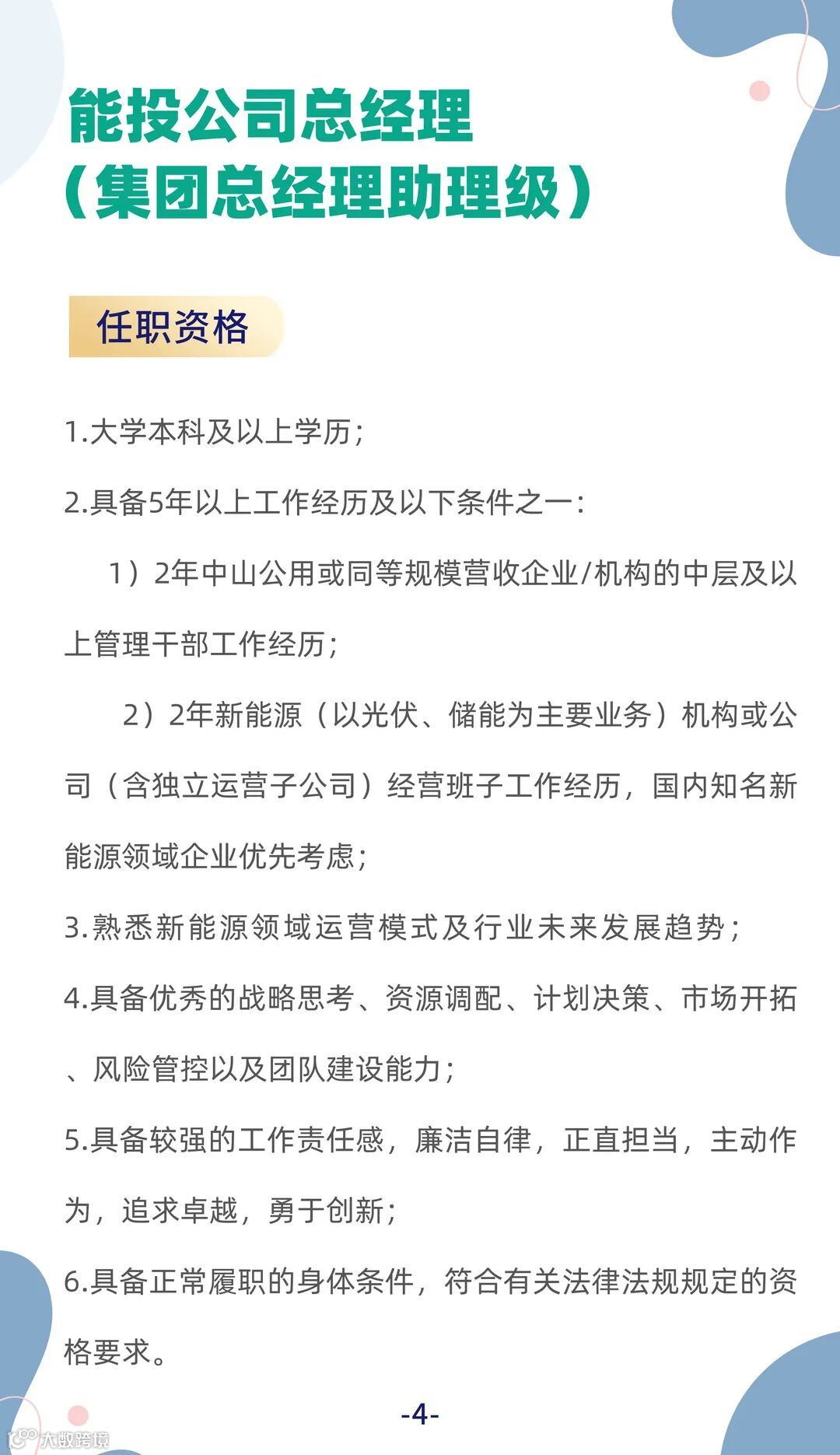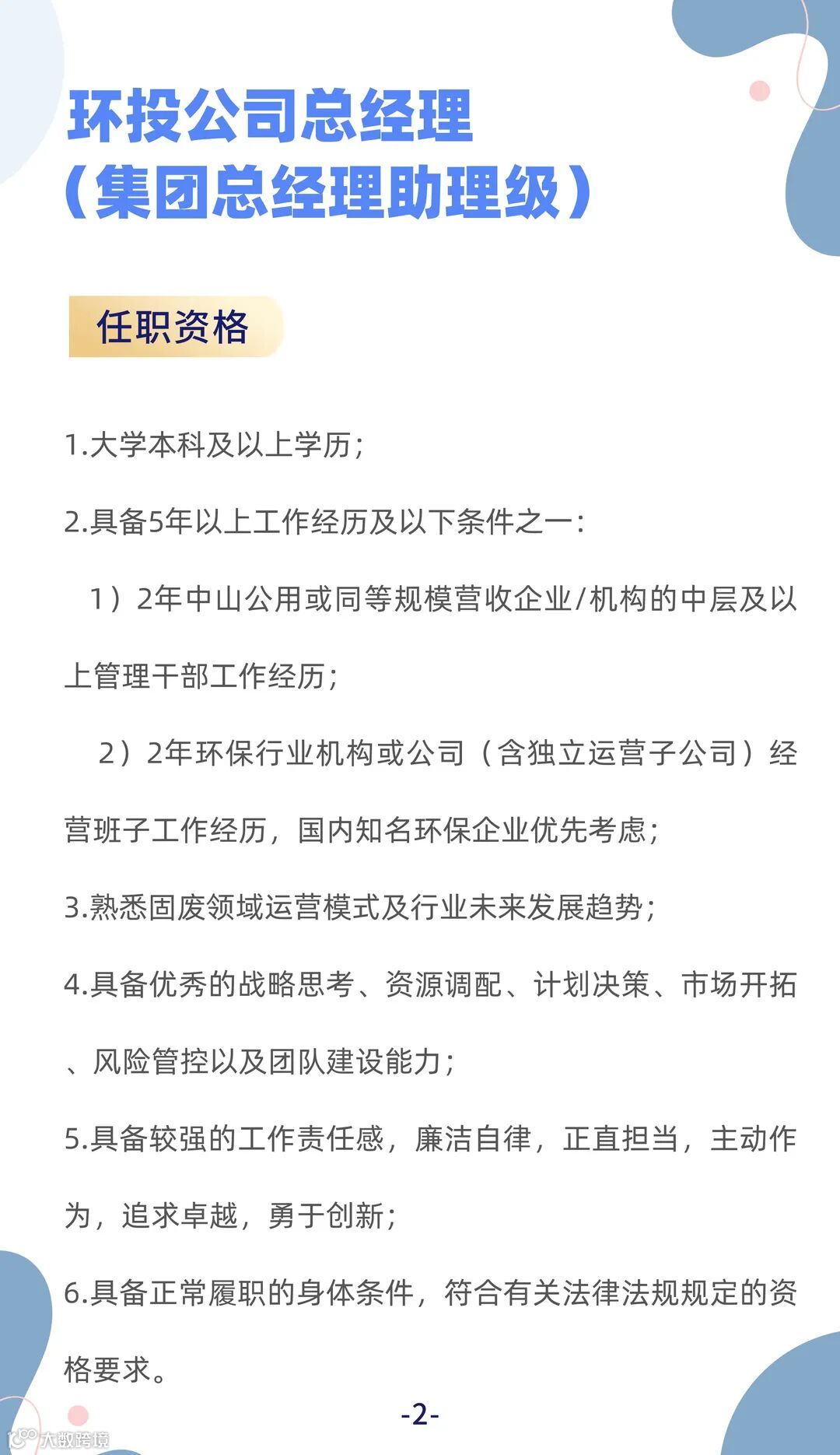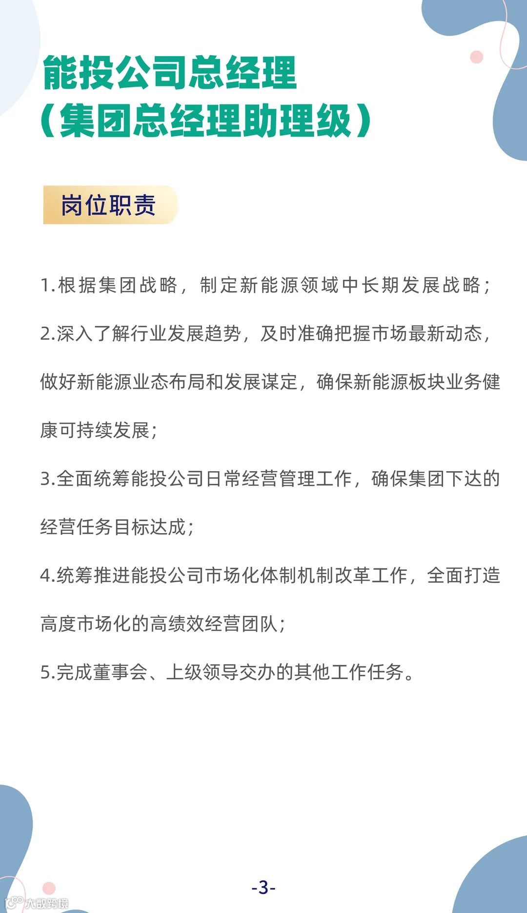 现根据业务发展需要面向企业内部及全社会市场化选聘环投公司总经理1名、能投公司总经理1名,有关事项公告如下: