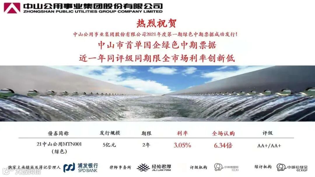 2021年7月,中山公用成功发行两期超短期融资券共10亿元,平均发行利率2.6%,创近三年同类企业债券利率新低;同时成功发行中山国企首单绿色中期票据5亿元,发行利率3.05%,创全市场近一年同评级同期限债券新低。上述债券根据募集说明书归还到期债务,预计一年可节省财务成本1500万元,较大地降低了融资成本。