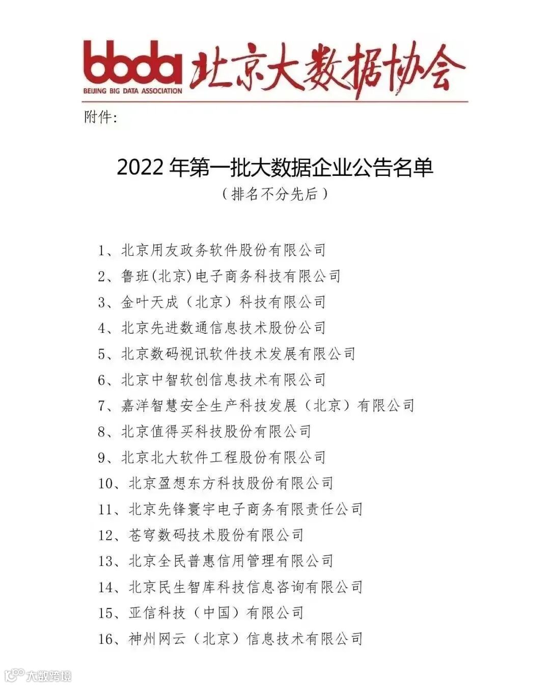 近日,北京市大数据协会公布了2022年第一批大数据企业公告名单。中铁物贸鲁班公司作为建筑业大数据应用代表成功入选2022年第一批北京市大数据企业,标志着鲁班公司在大数据全栈应用能力方面迈出坚实的步伐。