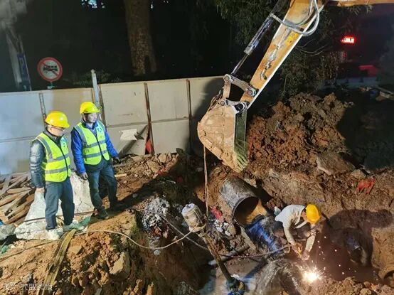 经反复研究与论证,专项小组将水管迁改工程的施工时间均调整至凌晨到次日早上,并要求施工人员于次日早上5点到达施工现场提前做好准备,对施工现场投入大量的工程监控,加强现场管控,确保用水可靠稳定。