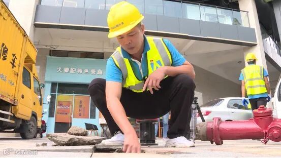 冯凯岚在中山公用水务有限公司工作了20年,每逢节假日,他都会主动选择值晚班。早上8点换班时,冯凯岚发现突发维修的任务比较多,为了减轻其他同事的负担,他放弃休息,赶赴维修现场。冯凯岚说:“其实维修消防栓很简单的,但是它维修的工序比较多,首先要挖开周边地砖和沙石,要挖得够深,大概在两个小时内我们应该能修复好。”