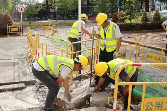 2021年3月19日下午2时许,户外骄阳似火。在中山军分区家属楼下,10多个头戴安全帽、身穿反光背心的工人正紧张忙碌地施工:开挖管坑、覆盖绿网、洒水降尘......这是中山公用水务为了保障中山军分区用水安全所进行的给水管改造工程。