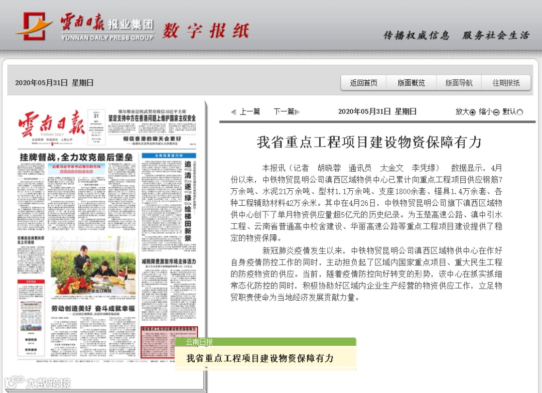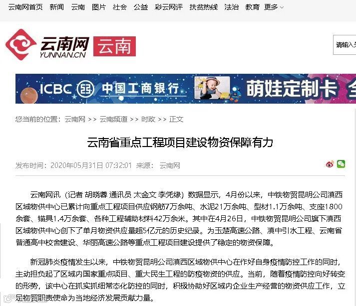 【云南日报】【云南政府网】【云南网】我省重点工程项目建设物资保障有力