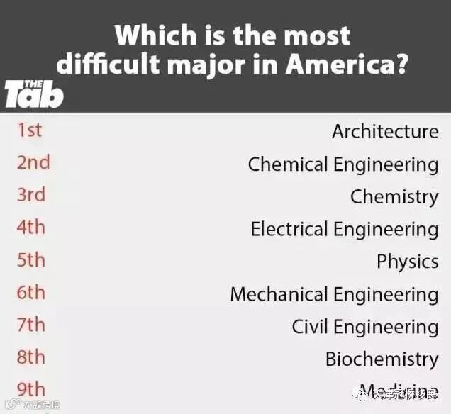 数据分析专家Matt Pencer综合了数千份调查和研究,将很多类专业根据难度的大小排名。睡得少、学得苦的建筑系排名第一,排在前面的大多数都是STEM专业。