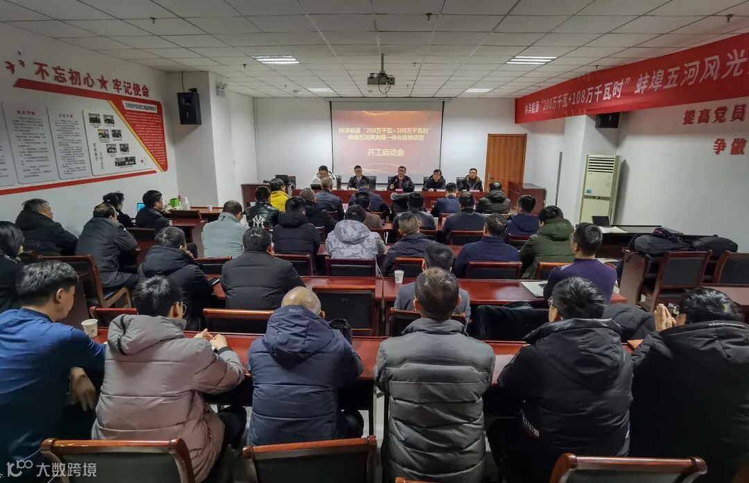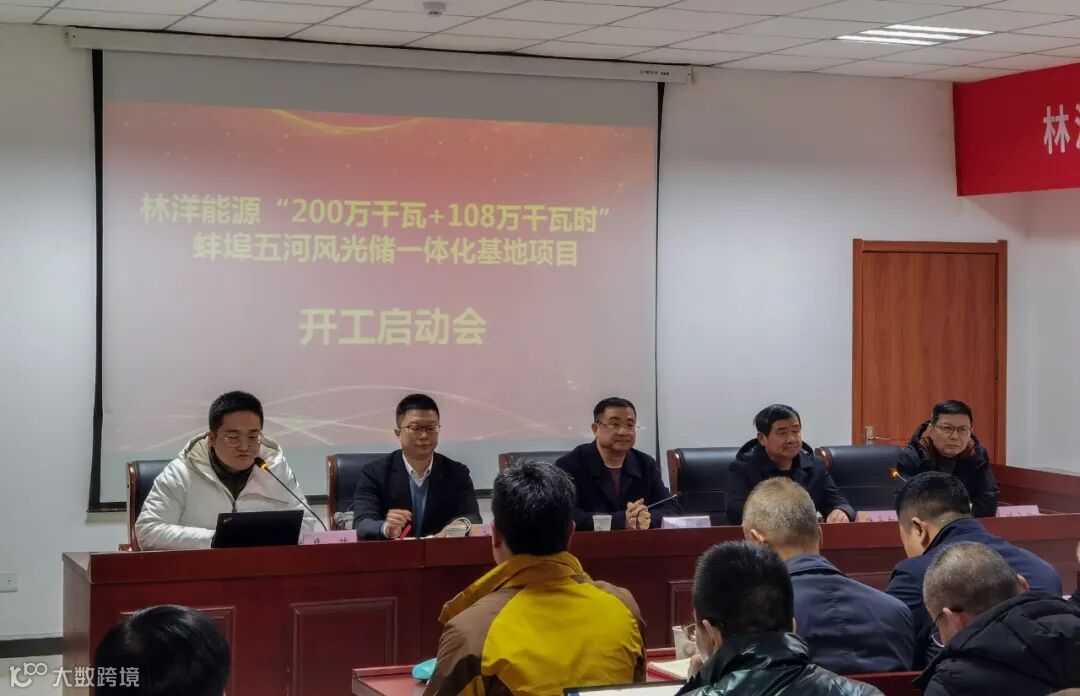 2月20日,林洋能源组织集团内部参建单位在五河县开发区召开了“200万千瓦+108万千瓦时”蚌埠五河风光储一体化基地项目”启动会。会上对该项目的开工建设、工程建设计划、接入过渡方案、五河新能源装备有限公司2.5GW光伏工厂建设周期、项目管理、投产运营等相关工作做了部署。林洋集团总裁、林洋能源董事长陆永华,林洋集团副董事长陆永新,林洋能源高级副总裁方壮志、裴骏、陈金敏等相关领导出席本次项目启动会。