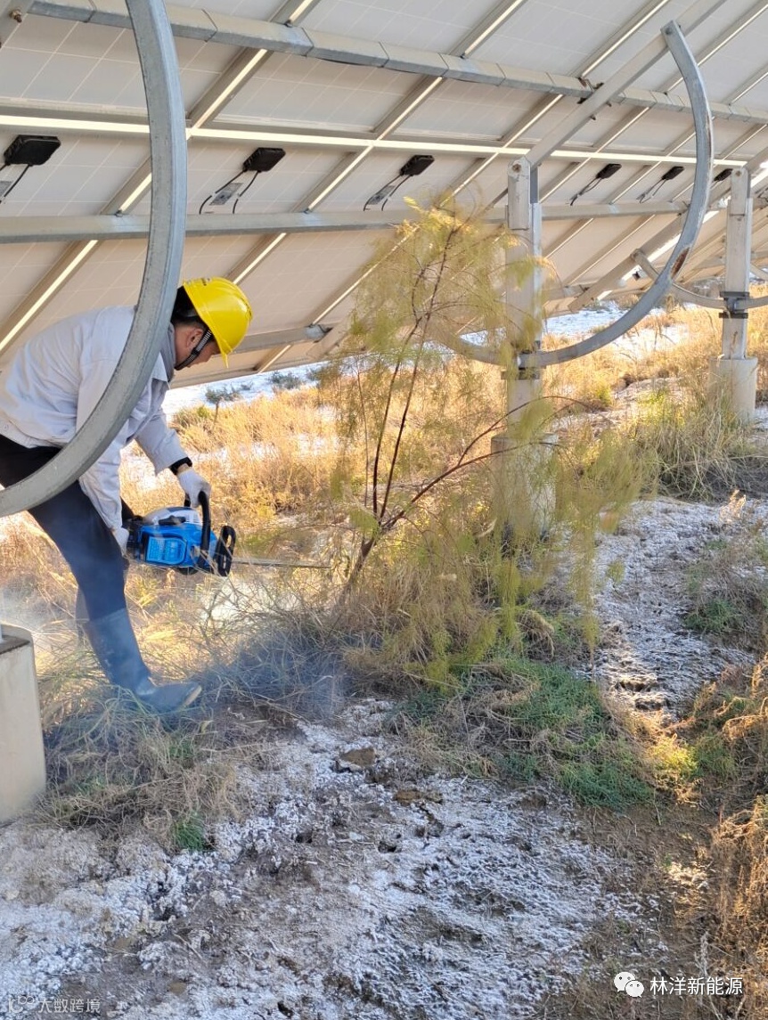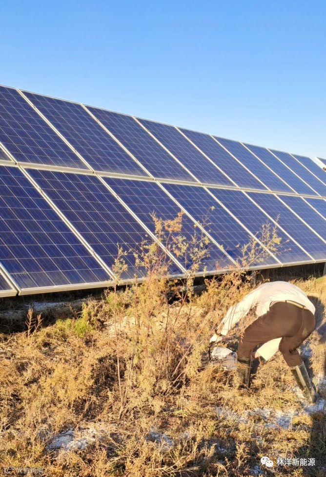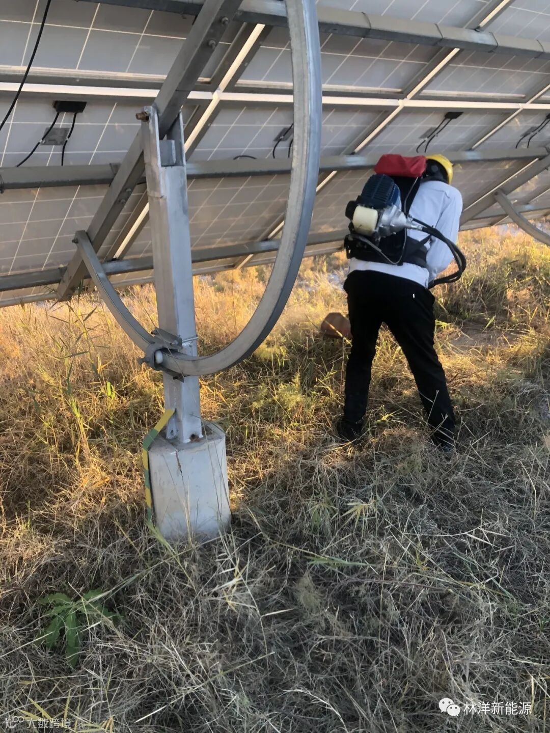 步入秋冬季节,光伏区的植被干枯,杂草及红柳不仅会对组件造成遮挡,还会形成火灾隐患,因此除草工作也是必不可少。由于光伏区有地面敷设电缆导致道路不平,大型除草设备无法进入工作区域,运维人员可采用便携割草机,一排一行扫雷式清理干枯植株。全力以赴清除每一片遮挡,争取多发每一度电量!