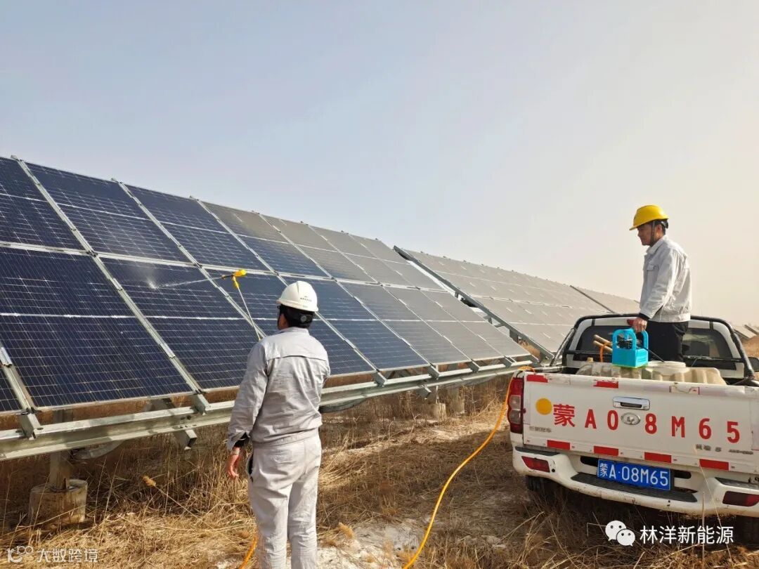 作为公司单体容量最大的运维项目——乾华电站运维团队在这场活动中发挥了带头作用。电站位于内蒙古托克托县,春秋季节气候干燥风沙较大,组件表面常常会覆盖一层细沙土,如不及时清理会形成条状热斑加快组件寿命衰减,从而影响发电量,因此必须定期实施组件清扫作业,提升组件性能、降低发电损失。电站通常采用清水冲洗法,与擦洗组件相比,水洗组件时间快、效果好,既能减少沙子与组件表面的摩擦,还能杜绝热斑效应,有效保障组件性能和寿命,对长远稳定可靠发电具有积极意义。