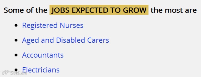 1. 医疗保健与社会服务业(Health Care and Social Assistance)。这个行业自上世纪90年代以来就一直是新增就业岗位最多的行业之一,而随着澳洲人口老龄化的不断加剧,对幼儿保育及家庭护理服务的需求增加,未来它还将保持这一势头。