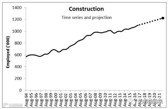 3. 建筑行业(Construction)。未来5年,这个行业将新增120,700个就业岗位,占总数的12.1%。住宅建筑领域的就业增长速度不会再像过去5年那么快,更多的就业增长将来自基础设施建设领域。