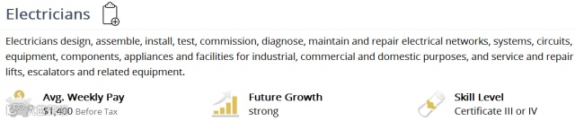 所以,打算来澳洲留学的小伙伴,学习护理、会计都是不错的选择。在蓝翔学过电工的盆友,估计来了澳洲会很吃香哦。
