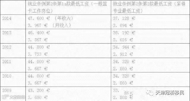 这个工作的工资也需要达到了当年所规定的可以拿蓝卡的最低工资标准;以下是德国内政部公布的历年蓝卡最低工资表: